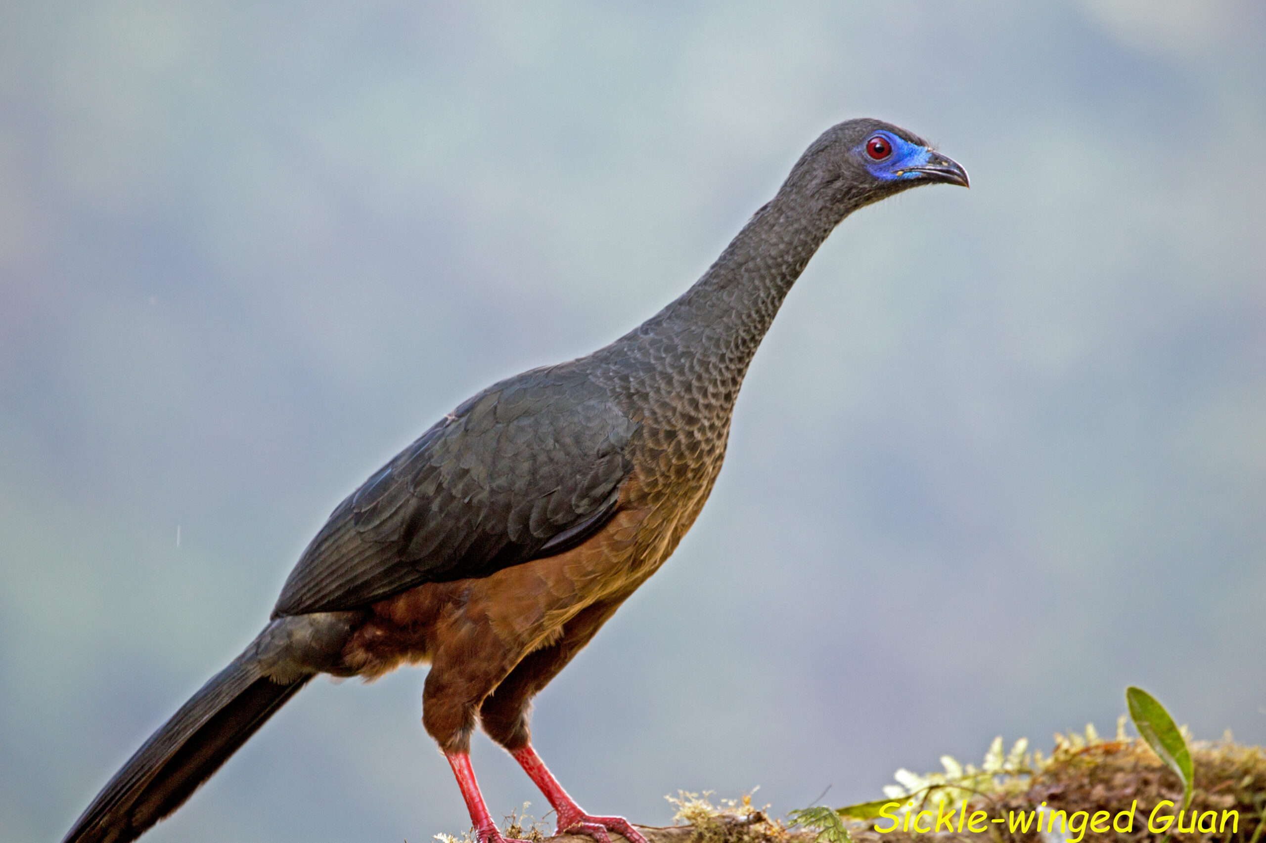 On 6 February, after our saying our farewells at Tandyapa, it was on to the lodge at Milpe. We did not take a direct route and, after an early start, we drove to a birding site where a white sheet was erected and lit. This was designed to attract moths and other insects encouraging the birds to come for their early morning feed. Although the light was insufficient to obtain decent photographs, we did see a number of species including Nightingale Thrush, Strong-billed Woodpecker and Chestnut-capped Brush-Finch. As the light improved and the birds were no longer feeding, we walked a short distance to spend some time at a small reserve which had a very large number of Hummingbird feeders attracting a huge number of birds including the Wedge-billed Hummingbird, Gorgeted Sunangel, Sickle-winged Guan and the beautiful Violet-tailed Sylph.