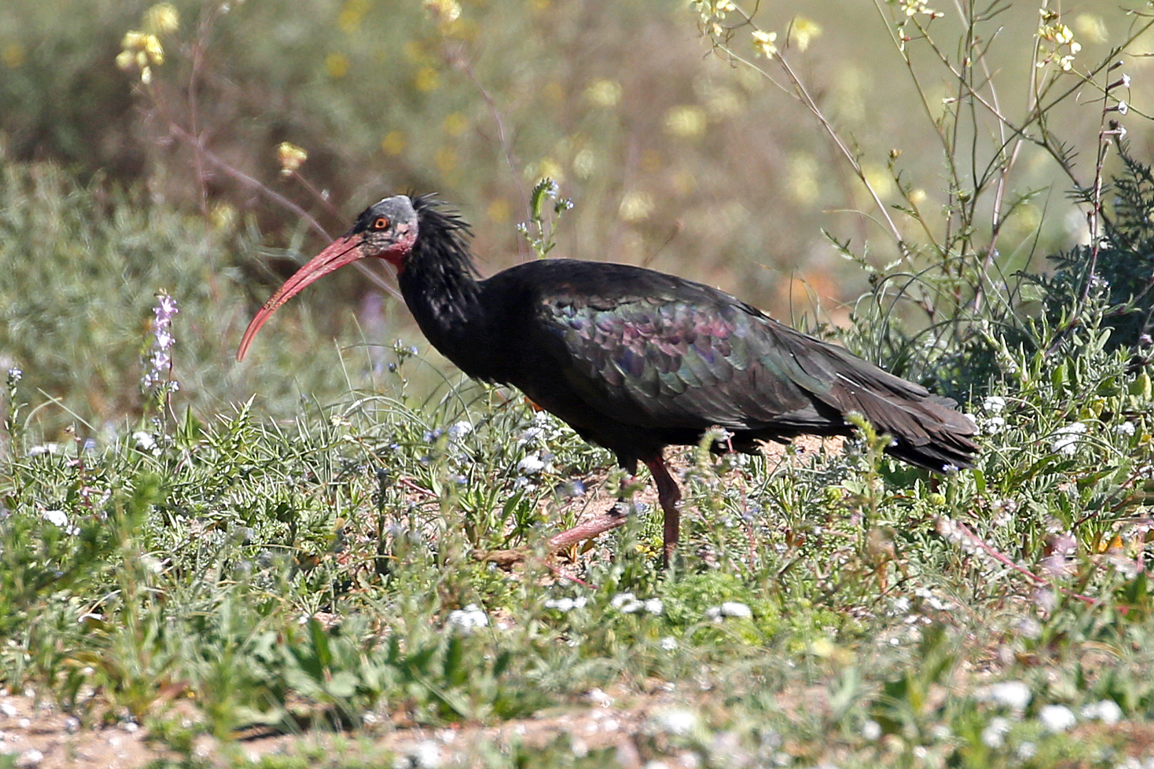 Then it was on to Sidi Wassay, a village about 30 miles south of Agadir for a three night stay. Our target bird for the next day was the Bald Ibis. However on the edge of the village we stopped to enjoy good views of the resident Little Owls which we had seen in poor light as we arrived the previous day. We also stopped at a relatively small field which was full of flowers and also full of Stone Curlews! There must have been at least 50 birds and we wondered whether this is the highest concentration of Stone Curlews anywhere – an amazing sight. Then it was back to finding the critically endangered Northern Bald Ibis. At one point there were only 50 pairs remaining but recent conservation efforts have resulted in increases in the Moroccan population. As we walked through grasslands we were able to see a flock of about 25 birds in the distance and by taking it very slowly we were able to get quite close without disturbing the birds, which by this time were feeding. In the afternoon we added Great Grey Shrike and Zitting Cisticola aka Fantailed Warbler, as well as having a superb view of Moussier’s Redstart and a large flock of circling Bald Ibis. A great day’s birding.