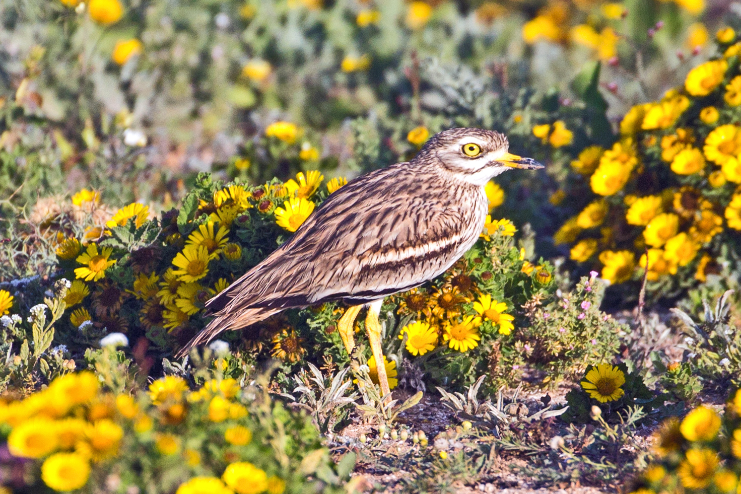 The following day we saw Laughing Dove aka Palm Dove and had another good view of the Tchagra. We also saw a number of familiar birds, including Stonechat, Grey Wagtail, Chaffinch, Goldfinch, Greenfinch, Linnet, Kingfisher, Grey Heron, Common Sandpiper, and of course, Bulbuls everywhere. As the light was so good they all gave us cracking views. In the afternoon we drove back to the coast and saw Audouin’s Gull and could not resist having another look at the Stone Curlews. The following day we had to return to Marrakesh but not before a visit to the Souss River close to Agadir where the birds we saw included Black-winged Stilt, Black-tailed Godwit and Greater Flamingo. The total bird count was 124 with approximately 40 ‘lifers’.