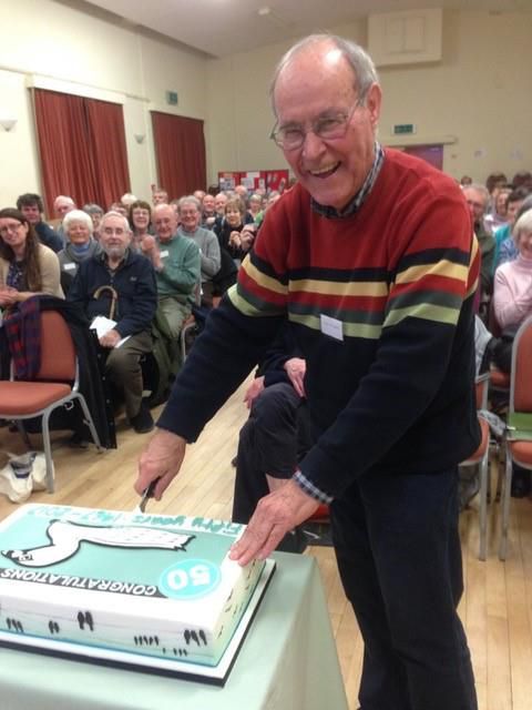 The evening was a wonderful collection of memories, personal reminiscences, and facts about the history of the club, with a delicious birthday cake for all. Robin Prytherch set the ball rolling by telling us about the Pied-billed Grebe, which initiated the whole project 50 years ago, and which to a young birder (yes, even Robin was one once!) was incredibly exciting, the first time ever it had been seen in the whole of the Western Palearctic. There were tales of romantic encounters when Richard met Rosemary whilst birding, of new birders (Alison Pilling) who enticed their husbands to join, of long-standing birders (Mike Jackson) who had been encouraged to start BBS surveys by John Tully, the latter a tremendous enthusiast who encouraged many. Peter Holbrook, past organiser of the Tuesday group, told us that there were 52 meetings last year under the guidance of Mark Watson. The group’s warm welcome has been the start of many a local birder’s career. Former Club Chairman Mike Lord returned from Cornwall with tales of a successful Chough watch adapted from our Peregrine watch. Jane Cumming highlighted the Avon Birds blog as a well-respected and well-used facility. Ken Hall detailed some of the many and varied trips to France which he had run, and former Club Secretary, Wendy Dickson, who had come down from Northumberland, spoke about birds on her previous home in the Shetlands. The whole evening emphasised the wonderfully friendly, warm atmosphere of the club, and was very ably chaired by Ken Carruthers.